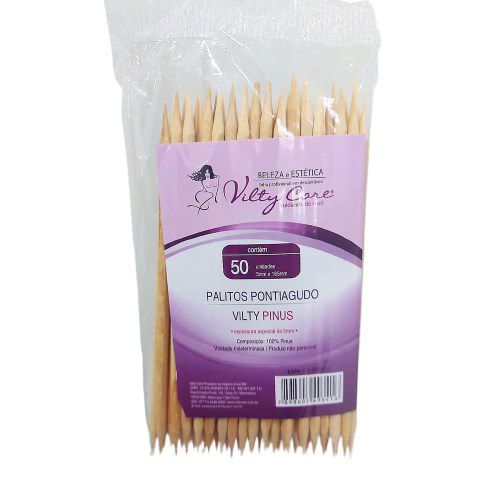 Nesta embalagem contém 50 unidades de palitos pontiagudos.